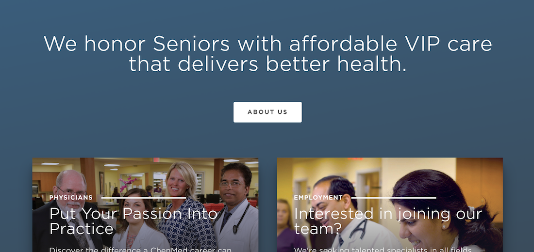 ChenMed is a senior healthcare provider in the US healthcare market. They have 3 main brands that serve several markets in the United States. These markets include JenCare Senior medical centers and (Virginia, Georgia, Illinois, Kentucky and Louisiana) Chen Senior medical centers (Miami, Florida) Dedicated Medical centers, (Tampa Bay, Florida & Lakeland, Florida). ChenMed also has 3 internal business sites that were worked on.